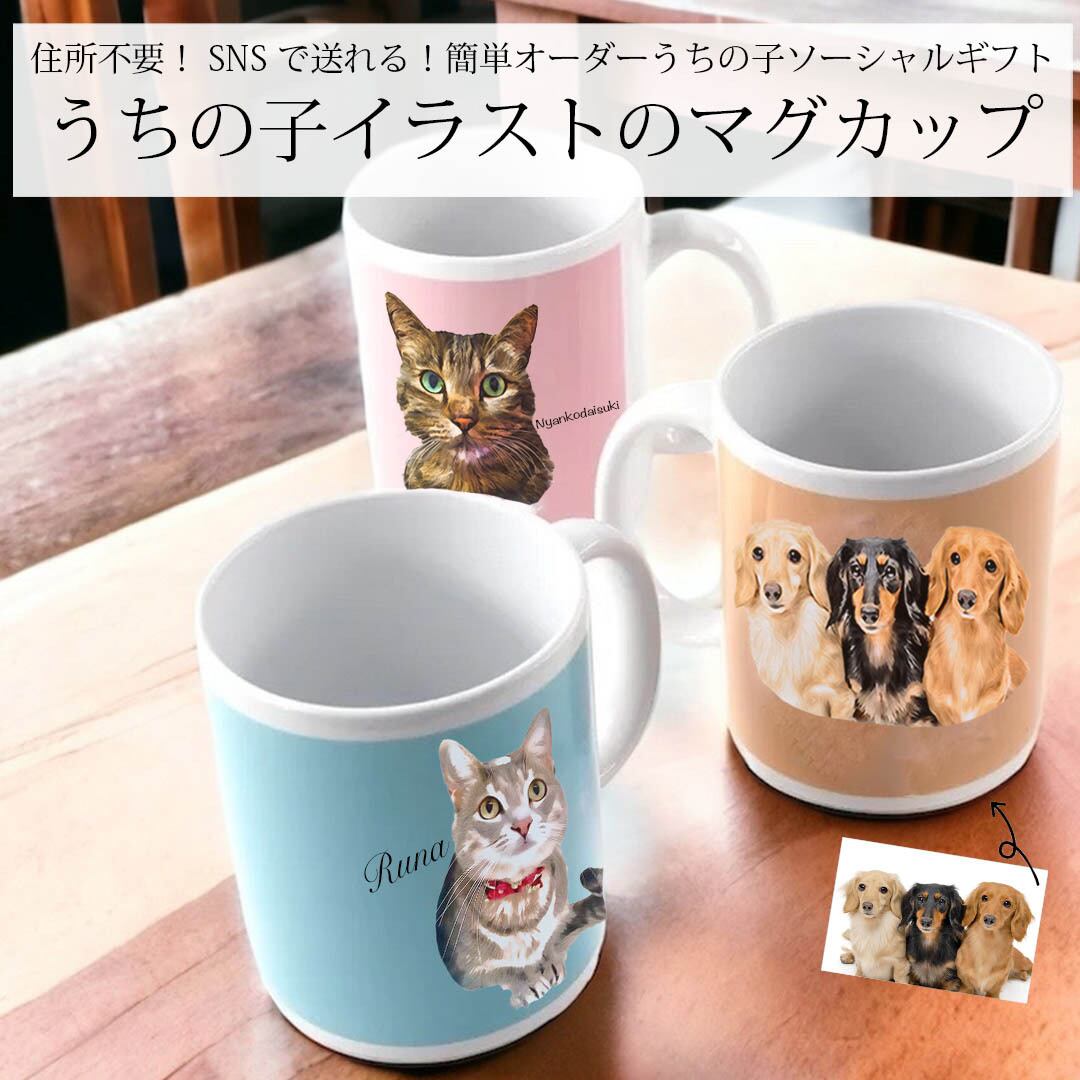 うちの子イラストのマグカップ〜住所不要!写真がなくてもSNS・LINE・メールで贈る!うちの子ソーシャルギフト〜