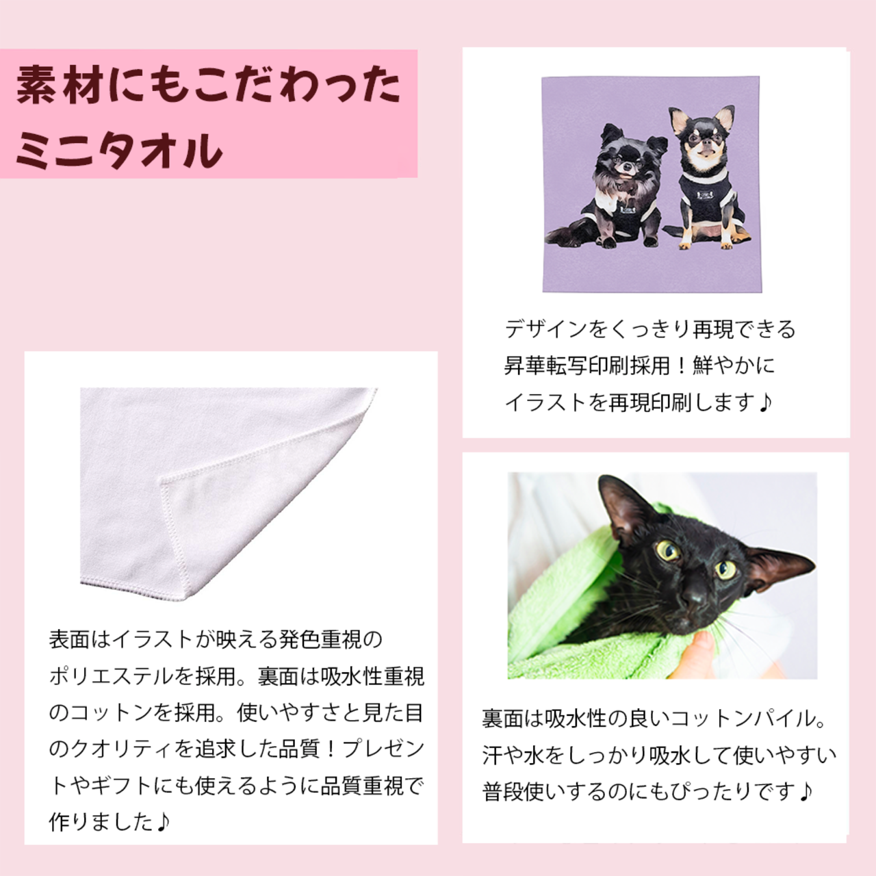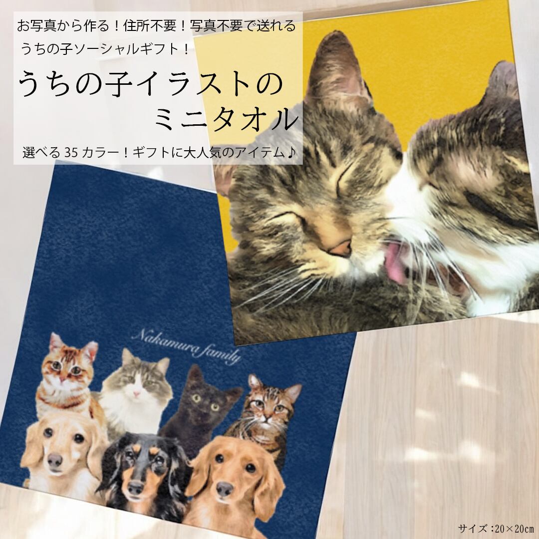 うちの子イラストのミニタオル〜住所不要!写真がなくてもSNS・LINE・メールで贈る!うちの子ソーシャルギフト〜