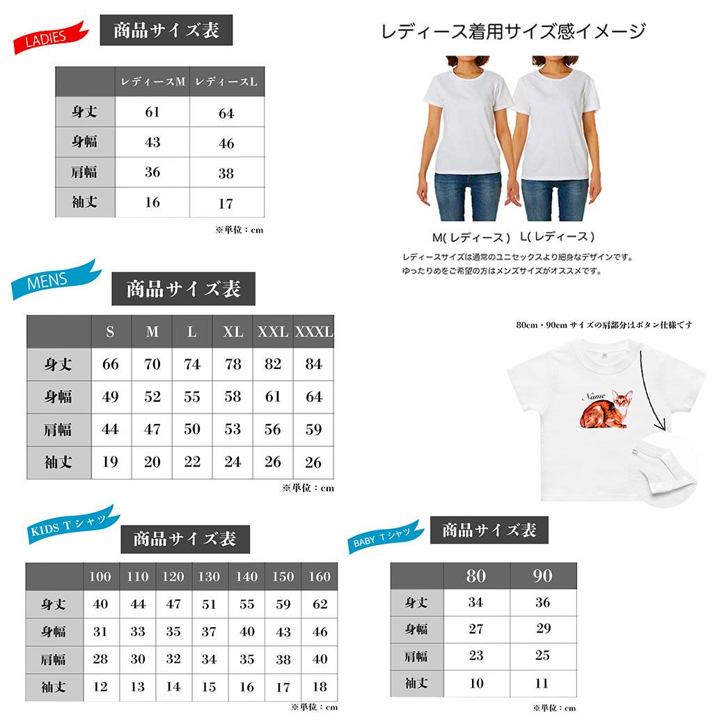 • Tシャツサイズ