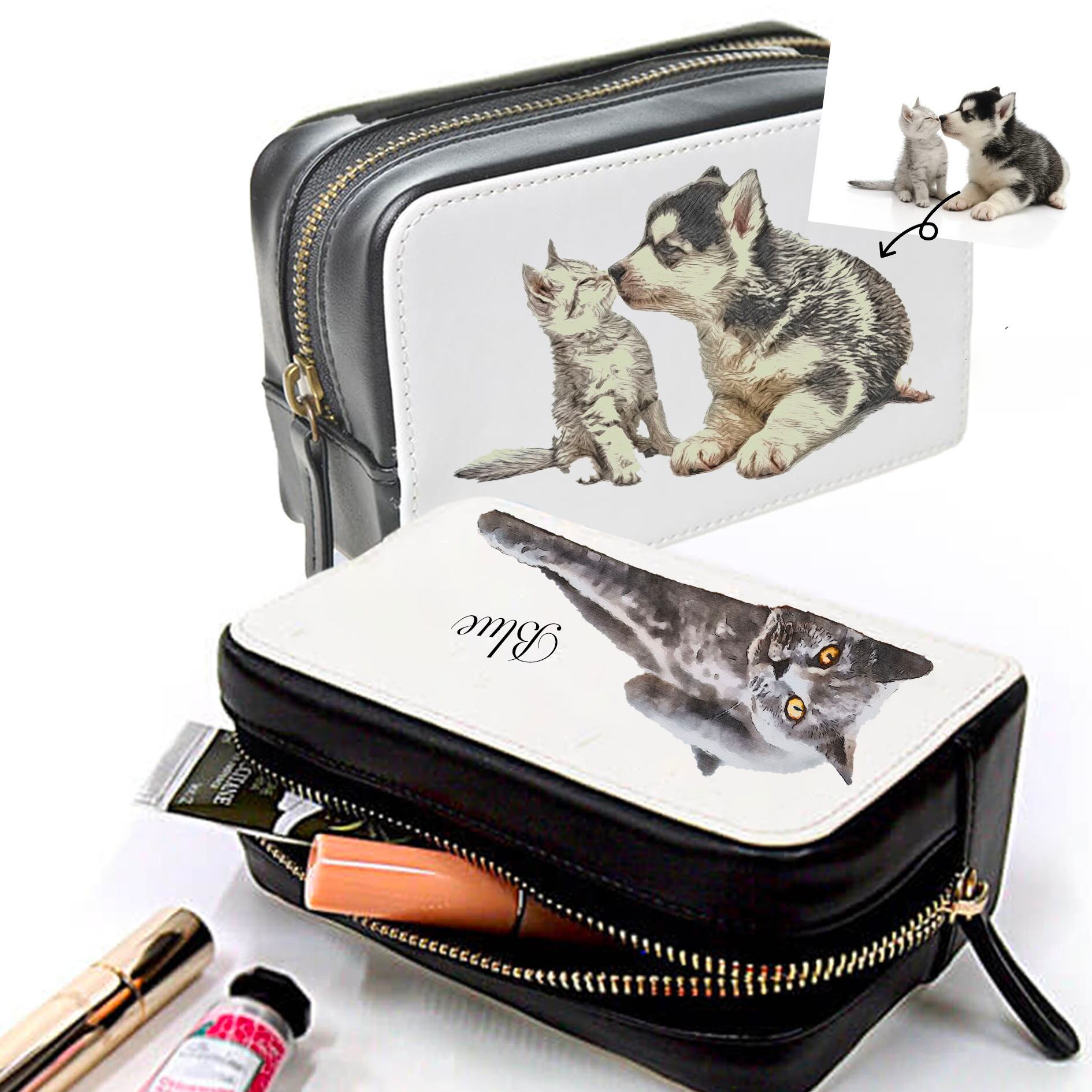 うちの子イラストのPUレザーポーチ〜住所不要!写真がなくてもSNS・LINE・メールで贈る!うちの子ソーシャルギフト〜