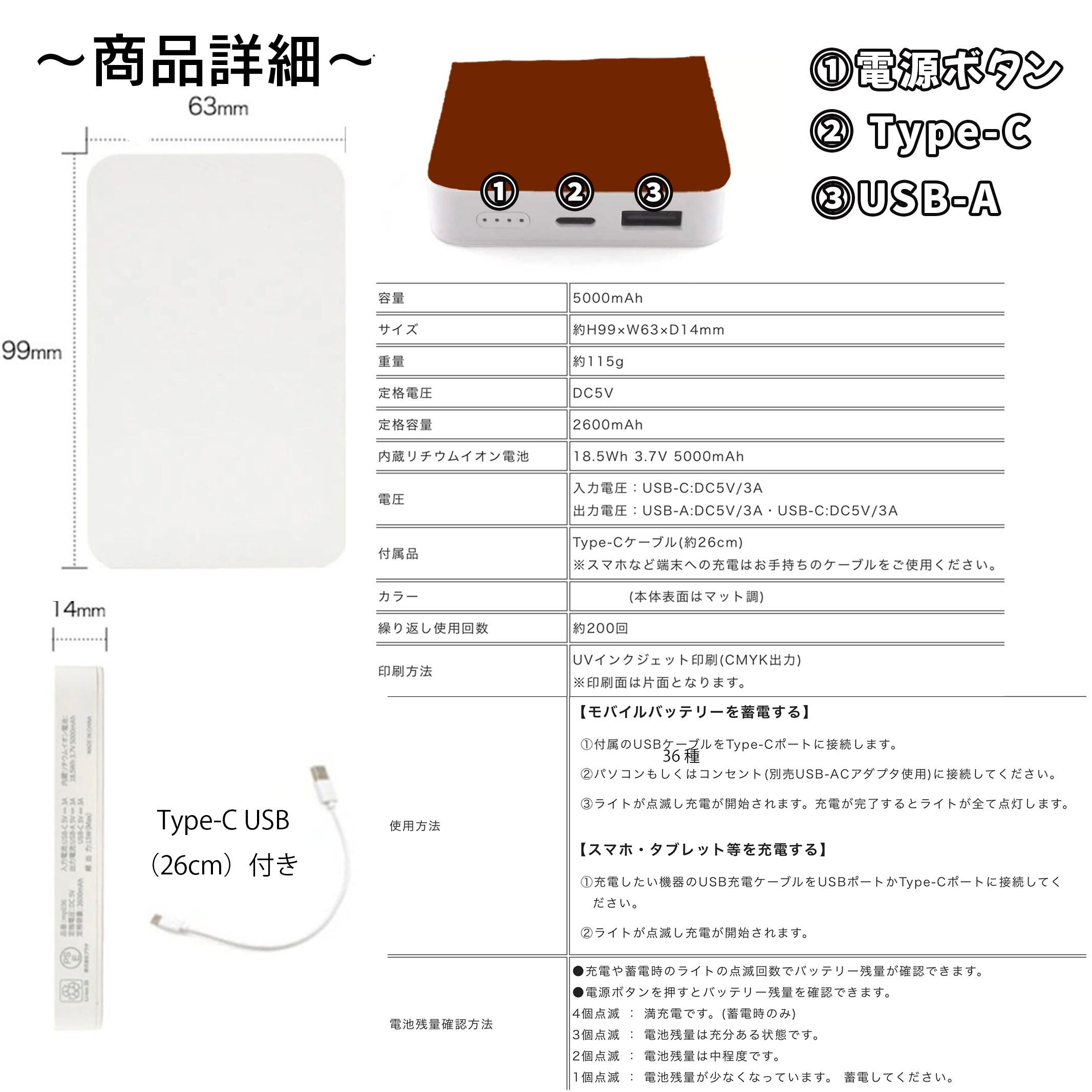 内蔵リチウムイオン電池 18.5Wh 3.7V 5000mAh