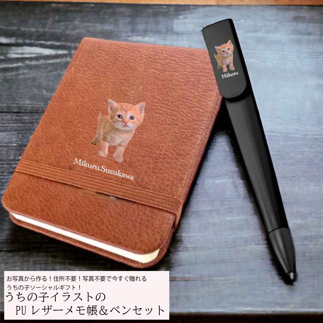 うちの子イラストPUレザーメモ帳&ラペルボールペン〜住所不要!写真がなくてもSNS・LINE・メールで贈る!うちの子ソーシャルギフト〜