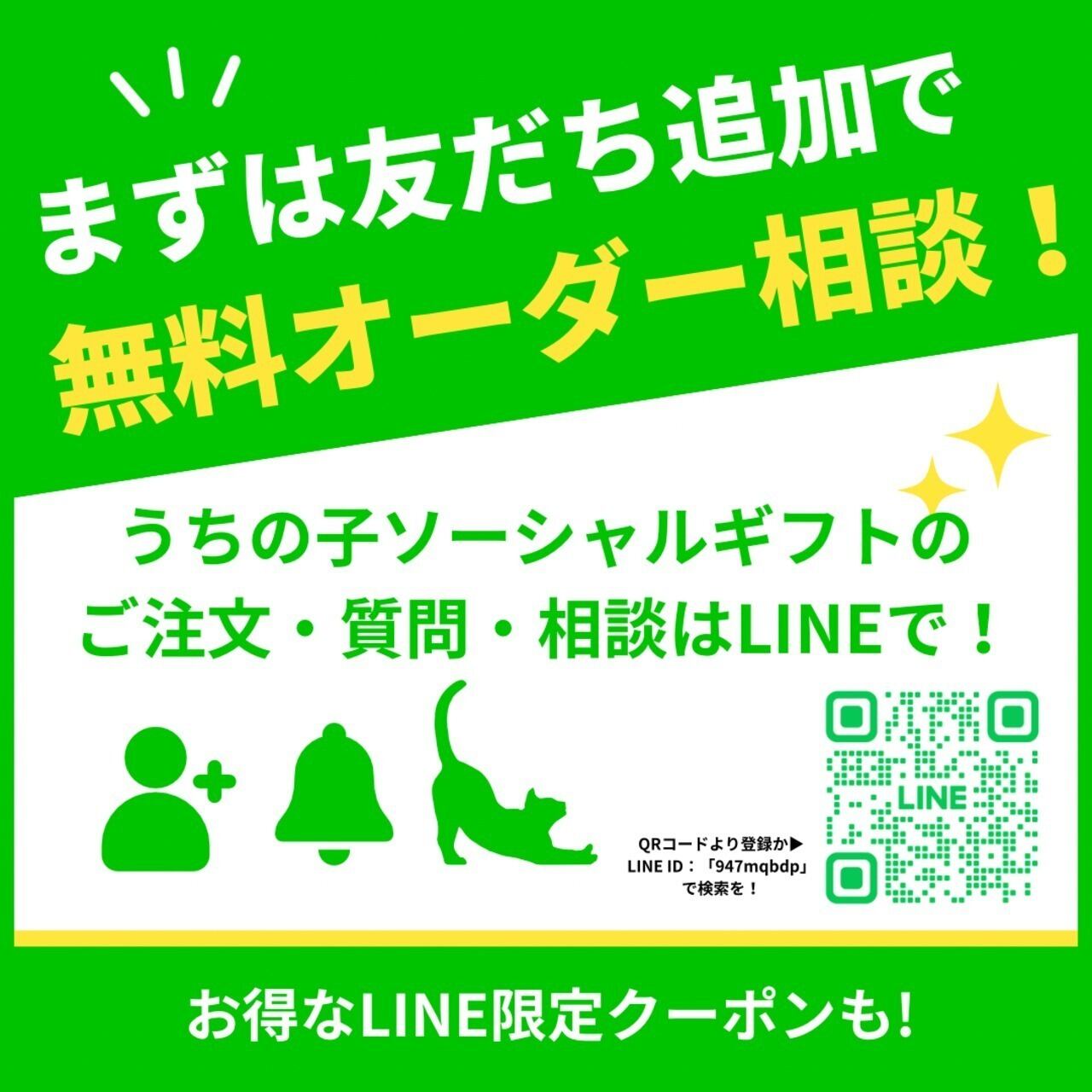 この商品は「うちの子ソーシャルギフト」です!贈る相手の住所がわからなくても、LINEやメールでURLを送るだけでプレゼントできます!もらった方が、ペットのお写真や希望を入力して、世界にひとつのオーダーグッズを受け取れます。