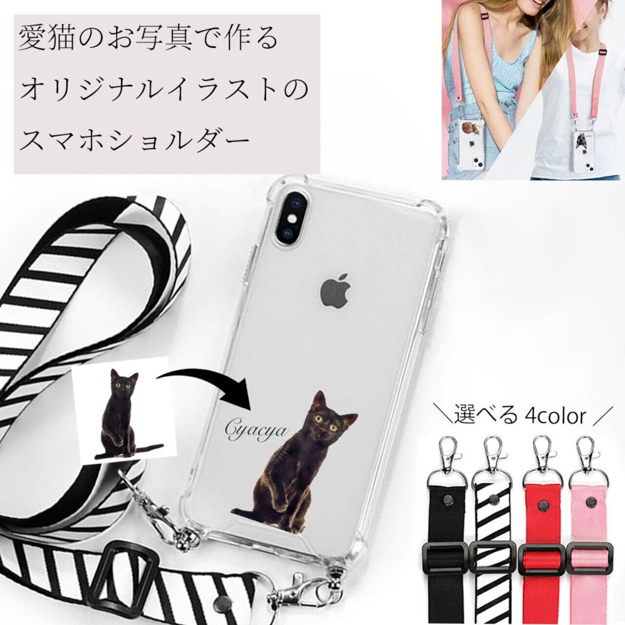猫好き・犬好き・うちの子好き専用!お写真からオリジナルイラストを作成!世界に一つだけのオリジナル!ショルダータイプのスマホケースを作成いたします♪