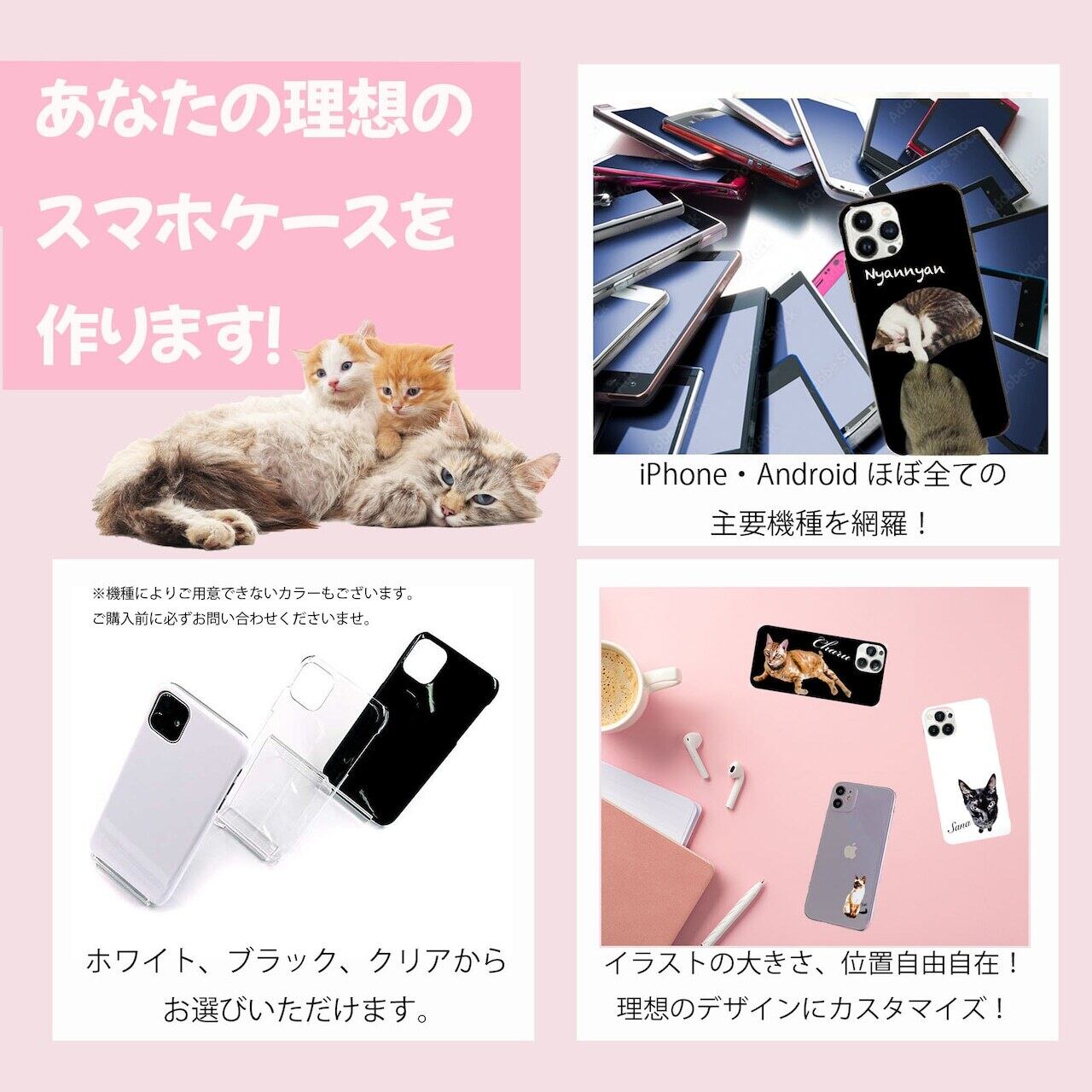 お写真からオーダーメイドイラストを作成♪猫のイラスト位置大きさなど自由にカスタマイズ!高品質かつ!オリジナルデザインのうちの子スマホケースは必見!iPhoneはもちろん、Androidの主要機種も揃えています!